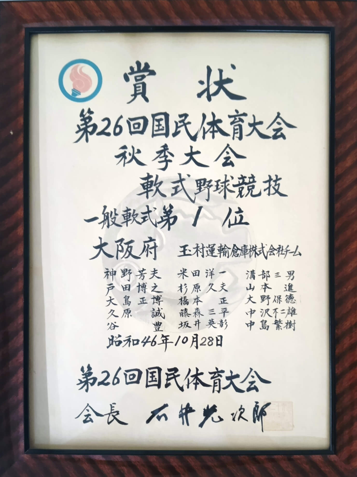 第26回国民体育大会、一般軟式野球の部で全国制覇する。