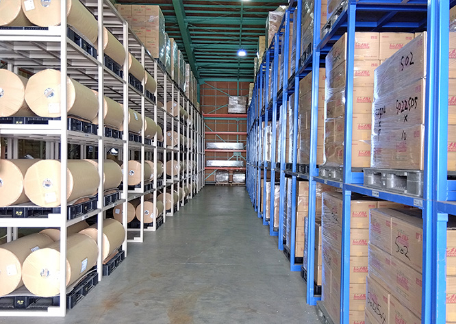 三芳倉庫は、巻取紙・フィルム・雑貨に特化しており、ピッキング作業や路線出荷(全国)も対応しております。