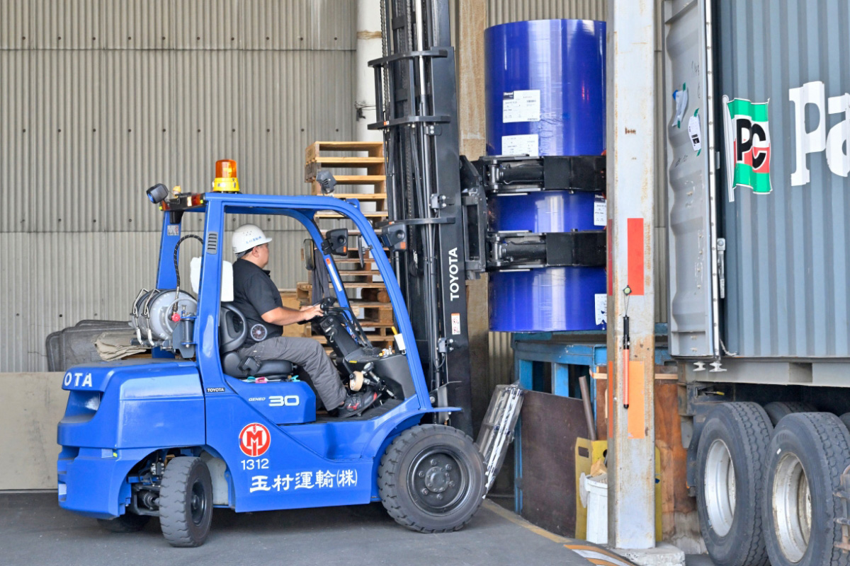玉村運輸のリフトオペレーター。